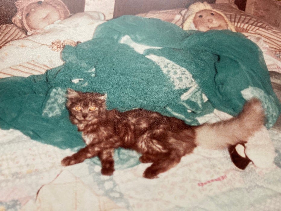 In part 1, I focused on the dogs from my early childhood but I cannot leave out the cats…lots and lots of cats! I came to call my mom the “cat lady” over the years. While she liked dogs I believe she was pretty partial to cats.